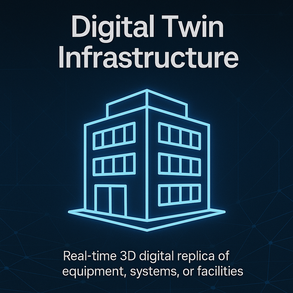 Real-time 3D digital replica of equipment, systems, or facilities.